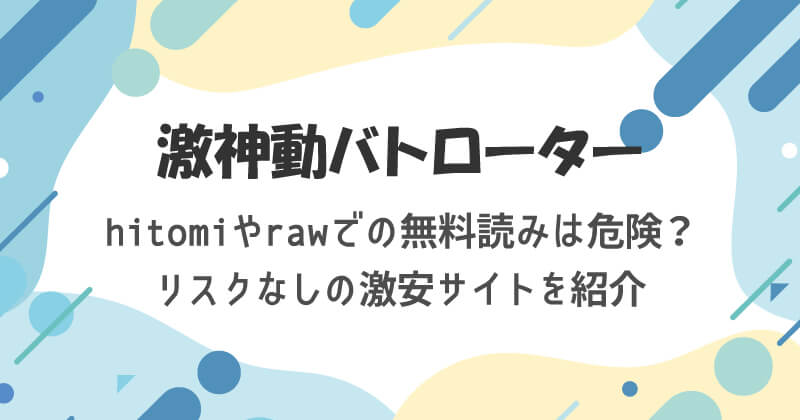 30円で読めるのは今だけ 今すぐ無料試し読みをする 最近じわじわと注目を集めている話題作『激神動バトローター』。 気になって、無料で読める方法ないかと調べた方も多いのではないでしょうか? 中には、「hitomi」や「raw」などのキーワードで検索してみ... -