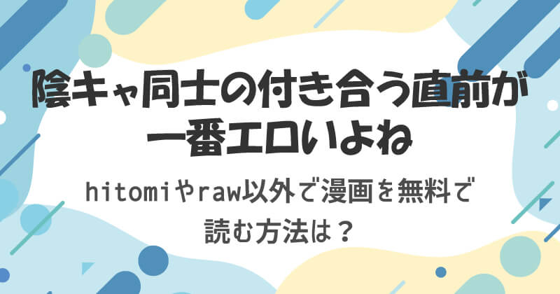 陰キャ同士の付き合う直前が一番エロいよねをhitomiやraw以外で漫画を無料で読む方法は?